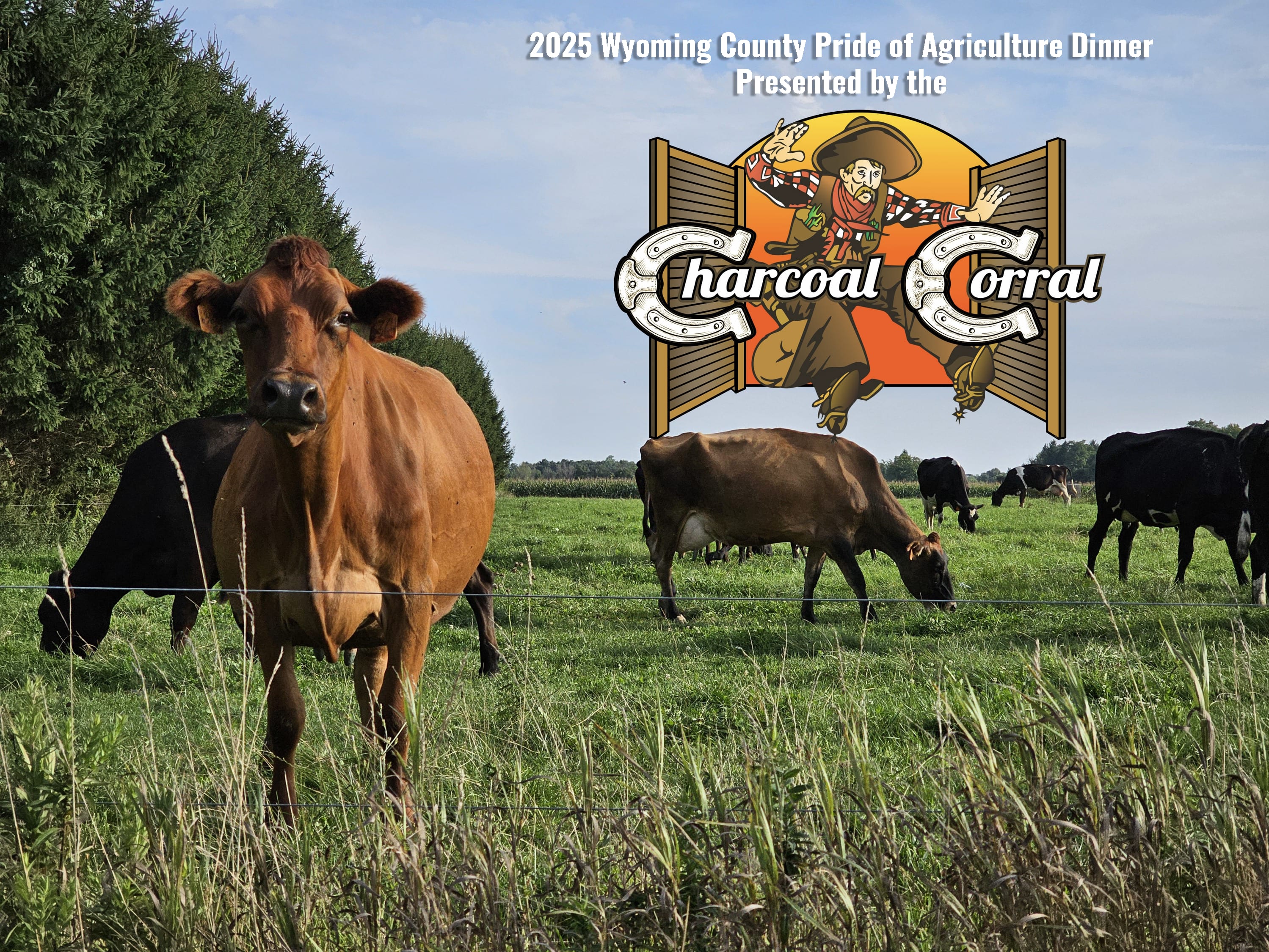 The Wyoming County Chamber & Tourism, Cornell Cooperative Extension, and Soil and Water Conservation District, have partnered to host the 16th Annual “Pride of Wyoming County Agriculture Dinner - presented by the Charcoal Corral,” to bring those in the agricultural industry together with their friends and neighbors to celebrate and recognize agriculture in Wyoming County. The event is scheduled for Saturday, March 1, 2025 at the North Java Fire Hall. Doors open at 5pm, dinner at 6pm, awards at 7:30pm.