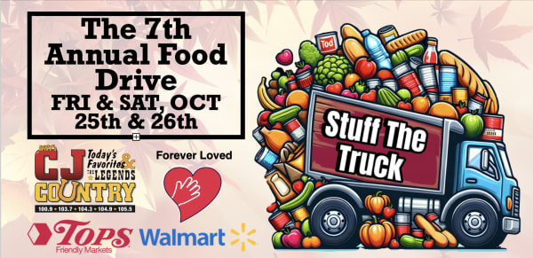 CJ Country Radio & Forever Loved team up again for The 7th Annual Food Drive “Stuff The Truck” to aid the Warsaw Food Pantry and feed those less fortunate in Wyoming County.