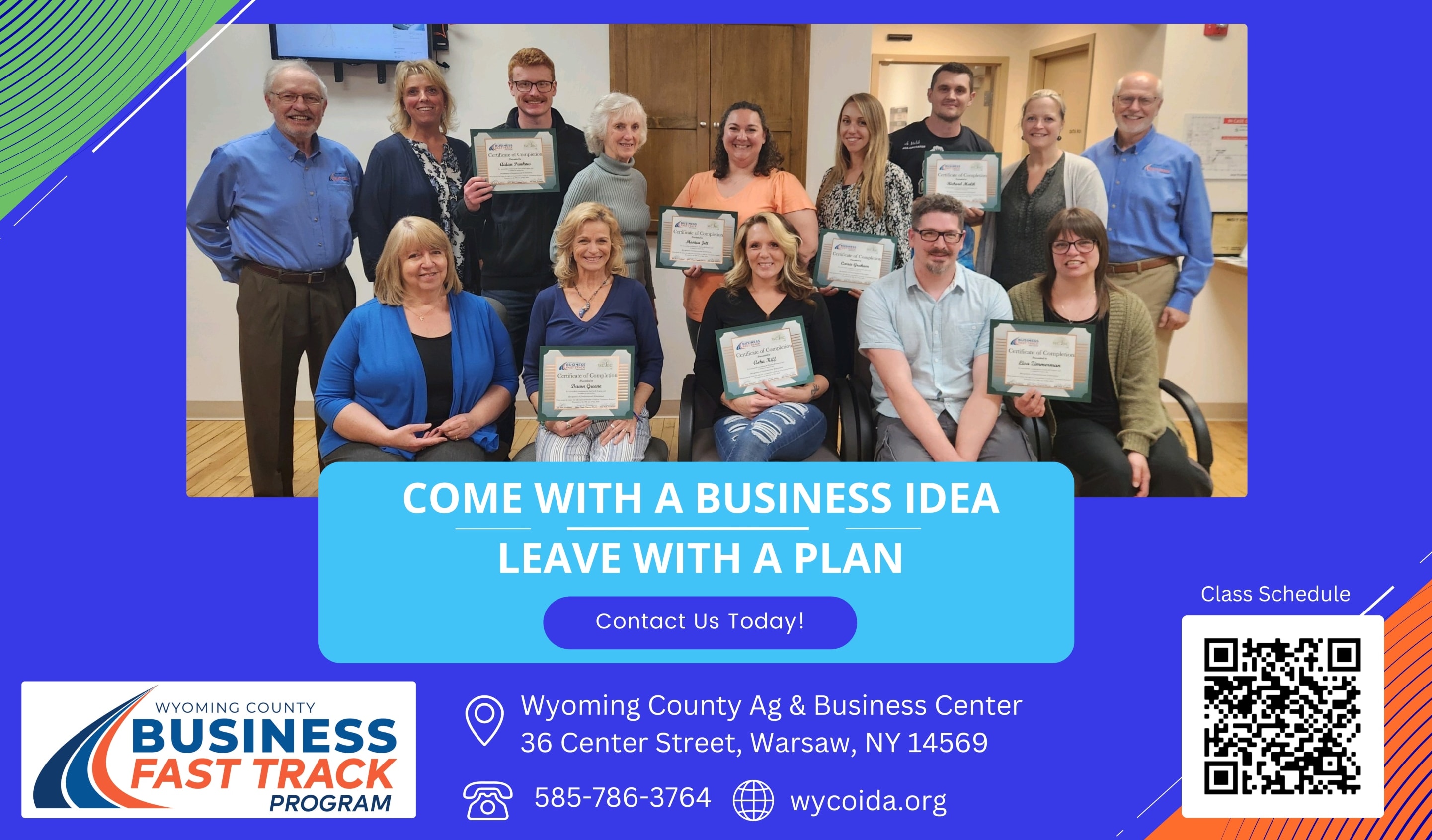 Wyoming County Business Fast Track Program The Wyoming County Business Fast Track program is a business development program designed to guide entrepreneurs, and fine-tune the skills needed to create, manage, and grow a successful business. Learn from class facilitators as well as guest speakers.